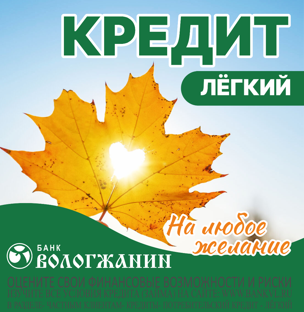 Всю осень в Банке «Вологжанин» потребительские кредиты до 1 млн рублей по лёгким ставкам.